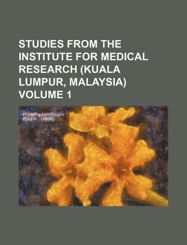 Studies from the Institute for Medical Research (Kuala Lumpur, Malaysia) Volume 1 full version