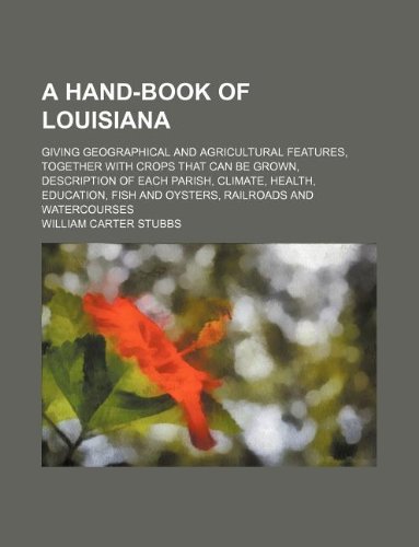 You are about to access our book library "A hand-book of Louisiana; giving geographical and agricultural features, together with crops that can be grown, description of each parish, climate, ... fish and oysters, railroads and watercourses full version"