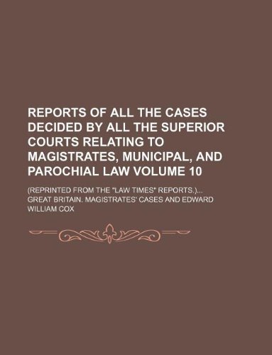 Reports of all the cases decided by all the superior courts relating to magistrates, municipal, and parochial law Volume 10; (Reprinted from the "Law times" reports.) full version