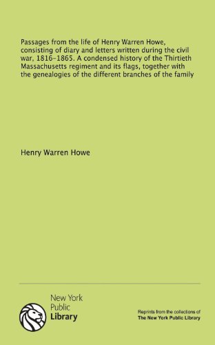 You are about to access our book library "Passages from the life of Henry Warren Howe, consisting of diary and letters written during the civil war, 1816-1865. A condensed history of the ... the genealogies of the different branches... full version"
