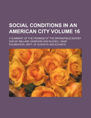 Social conditions in an American city Volume 16; a summary of the findings of the Springfield survey full version