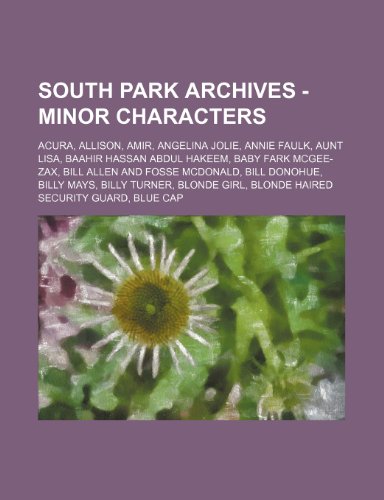 South Park Archives - Minor Characters: Acura, Allison, Amir, Angelina Jolie, Annie Faulk, Aunt Lisa, Baahir Hassan Abdul Hakeem, Baby Fark McGee-Zax, full version