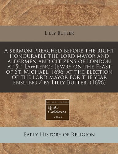 You are about to access our book library "A sermon preached before the right honourable the lord mayor and aldermen and citizens of London at St. Lawrence Jewry on the Feast of St. Michael, ... the year ensuing / by Lilly Butler. (1696) full version"