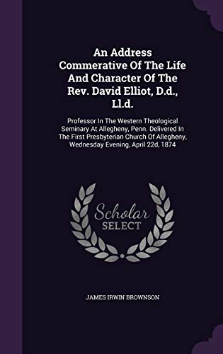 You are about to access our book library "An Address Commerative Of The Life And Character Of The Rev. David Elliot, D.d., Ll.d.: Professor In The Western Theological Seminary At Allegheny, ... Allegheny, Wednesday Evening, April 22d, 1874 full version"