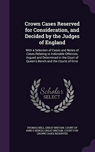 Crown Cases Reserved for Consideration, and Decided by the Judges of England: With a Selection of Cases and Notes of Cases Relating to Indictable ... of Queen's Bench and the Courts of Error full version