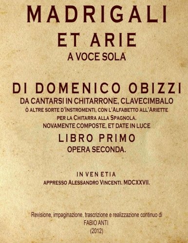 Ebook Obizzi Domenico (1611-1629) - Madrigali et Arie a voce sola: Venezia 1627 - rev FABIO ANTI (Italian Edition) full version