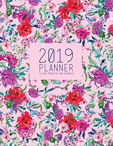 2019 Planner To Stay Productive And Organized: Pink, Red, And Purple Watercolor Flowers On Ppink Background full version
