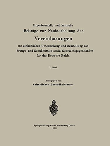 You are about to access our book library "Experimentelle und kritische Beiträge zur Neubearbeitung der Vereinbarungen zur einheitlichen Untersuchung und Beurteilung von Nahrungs- und Genußmitteln ... das Deutsche Reich: I. Band (German Edition) full version"