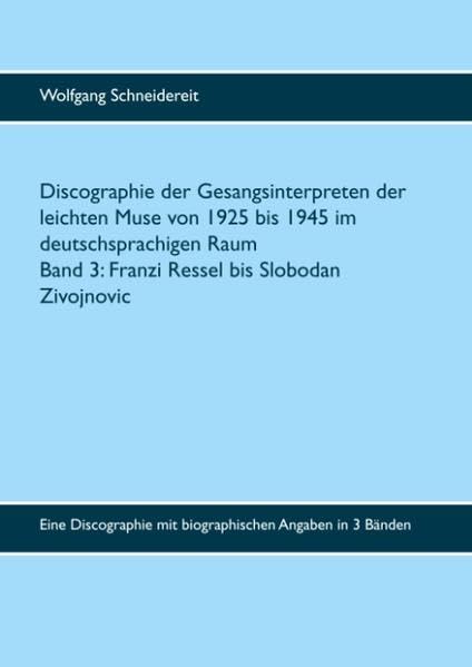 You are about to access our book library "Discographie der Gesangsinterpreten der leichten Muse von 1925 bis 1945 im deutschsprachigen Raum: Eine Discographie mit biographischen Angaben in 3 ... 3: Ethel Reschke bis Slobodan Zivojnovic full version"