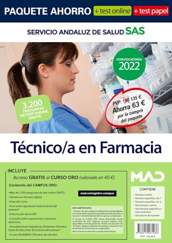 Paquete Ahorro + TEST PAPEL y ONLINE Técnico/a en Farmacia Servicio Andaluz de Salud. Ahorra 63€ (in full version
